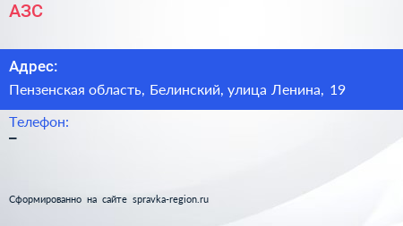 АЗС по адресу Пензенская область, Белинский, улица Ленина, 19 в дальнейшем Организация, размещена в следующих категориях:
