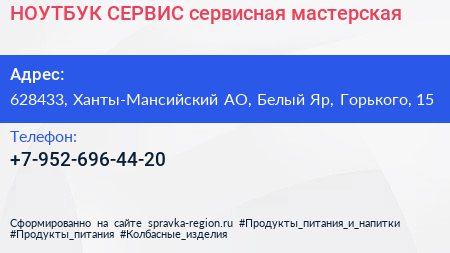 НОУТБУК-СЕРВИС, сервисная мастерская по адресу 628433, Ханты-Мансийский АО, Белый Яр, Горького, 15 в дальнейшем Организация, размещена в следующих категориях: