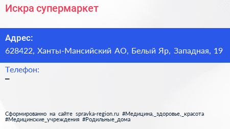 Искра, супермаркет по адресу 628422, Ханты-Мансийский АО, Белый Яр, Западная, 19 в дальнейшем Организация, размещена в следующих категориях: