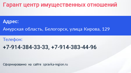 Гарант, центр имущественных отношений по адресу Амурская область, Белогорск, улица Кирова, 129 в дальнейшем Организация, размещена в следующих категориях: