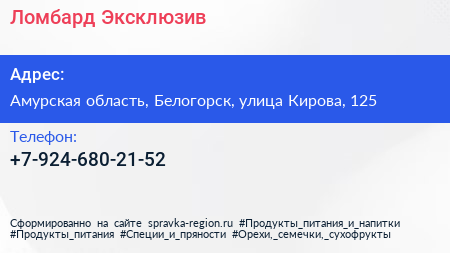 Ломбард Эксклюзив по адресу Амурская область, Белогорск, улица Кирова, 125 в дальнейшем Организация, размещена в следующих категориях: