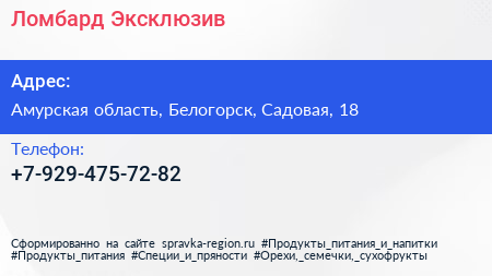 Ломбард Эксклюзив по адресу Амурская область, Белогорск, Садовая, 18 в дальнейшем Организация, размещена в следующих категориях: