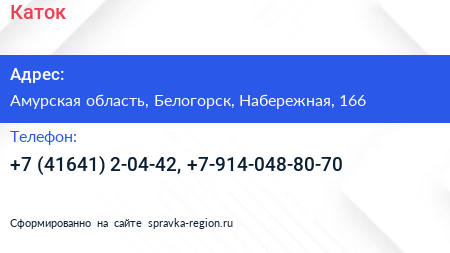 Каток по адресу Амурская область, Белогорск, Набережная, 166 в дальнейшем Организация, размещена в следующих категориях: