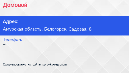 Домовой по адресу Амурская область, Белогорск, Садовая, 8 в дальнейшем Организация, размещена в следующих категориях: