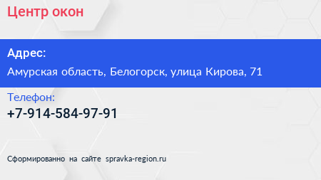 Центр окон по адресу Амурская область, Белогорск, улица Кирова, 71 в дальнейшем Организация, размещена в следующих категориях: