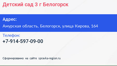 Детский сад №3, г. Белогорск по адресу Амурская область, Белогорск, улица Кирова, 164 в дальнейшем Организация, размещена в следующих категориях:
