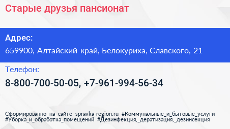 Старые друзья, пансионат по адресу 659900, Алтайский край, Белокуриха, Славского, 21 в дальнейшем Организация, размещена в следующих категориях: