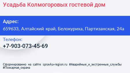 Усадьба Колмогоровых, гостевой дом по адресу 659633, Алтайский край, Белокуриха, Партизанская, 24а в дальнейшем Организация, размещена в следующих категориях: