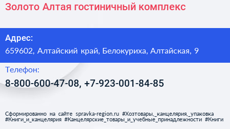 Золото Алтая, гостиничный комплекс по адресу 659602, Алтайский край, Белокуриха, Алтайская, 9 в дальнейшем Организация, размещена в следующих категориях: