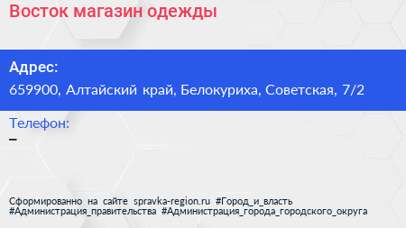 Восток, магазин одежды по адресу 659900, Алтайский край, Белокуриха, Советская, 7/2 в дальнейшем Организация, размещена в следующих категориях:
