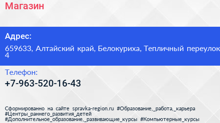 Адрес: Алтайский край, Белокуриха, Советская, 3а