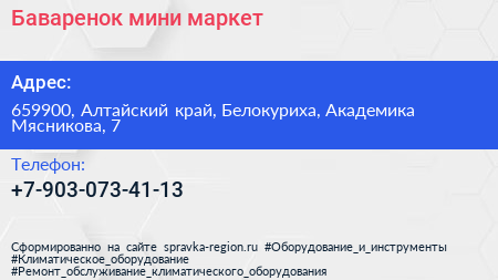 Баваренок, мини-маркет по адресу 659900, Алтайский край, Белокуриха, Академика Мясникова, 7 в дальнейшем Организация, размещена в следующих категориях: