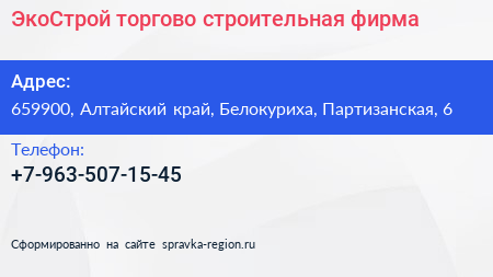 ЭкоСтрой, торгово-строительная фирма по адресу 659900, Алтайский край, Белокуриха, Партизанская, 6 в дальнейшем Организация, размещена в следующих категориях: