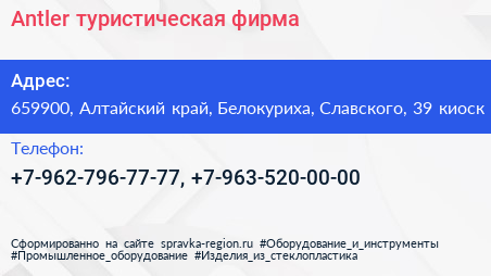 Antler, туристическая фирма по адресу 659900, Алтайский край, Белокуриха, Славского, 39 киоск в дальнейшем Организация, размещена в следующих категориях: