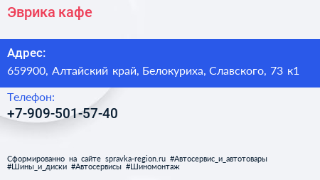 Эврика, кафе по адресу 659900, Алтайский край, Белокуриха, Славского, 73 к1 в дальнейшем Организация, размещена в следующих категориях: