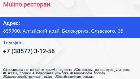 Mulino, ресторан по адресу 659900, Алтайский край, Белокуриха, Славского, 35 в дальнейшем Организация, размещена в следующих категориях:
