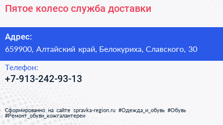 Пятое колесо, служба доставки по адресу 659900, Алтайский край, Белокуриха, Славского, 30 в дальнейшем Организация, размещена в следующих категориях: