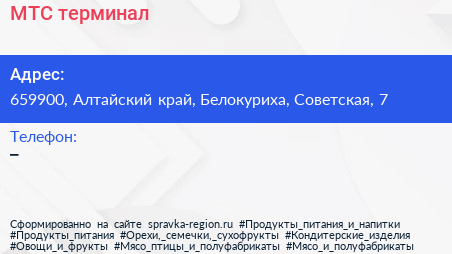 МТС, терминал по адресу 659900, Алтайский край, Белокуриха, Советская, 7 в дальнейшем Организация, размещена в следующих категориях: