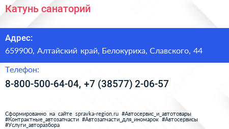 Катунь, санаторий по адресу 659900, Алтайский край, Белокуриха, Славского, 44 в дальнейшем Организация, размещена в следующих категориях: