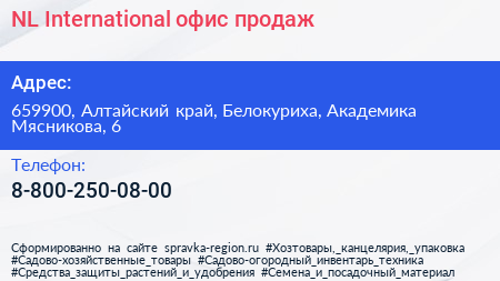 NL International, офис продаж по адресу 659900, Алтайский край, Белокуриха, Академика Мясникова, 6 в дальнейшем Организация, размещена в следующих категориях: