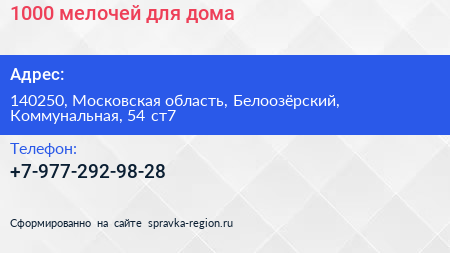 1000 мелочей для дома по адресу 140250, Московская область, Белоозёрский, Коммунальная, 54 ст7 в дальнейшем Организация, размещена в следующих категориях: