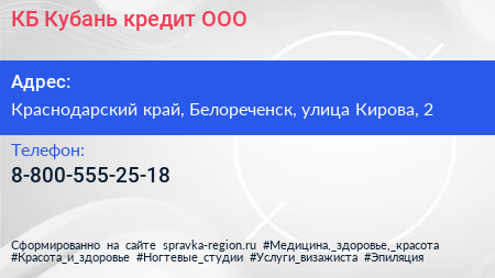 КБ Кубань кредит, ООО по адресу Краснодарский край, Белореченск, улица Кирова, 2 в дальнейшем Организация, размещена в следующих категориях: