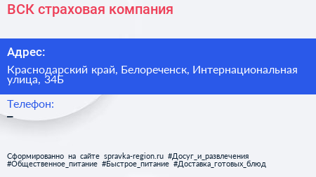 ВСК, страховая компания по адресу Краснодарский край, Белореченск, Интернациональная улица, 34Б в дальнейшем Организация, размещена в следующих категориях: