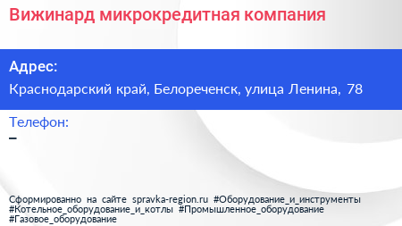 Вижинард, микрокредитная компания по адресу Краснодарский край, Белореченск, улица Ленина, 78 в дальнейшем Организация, размещена в следующих категориях: