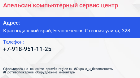Апельсин, компьютерный сервис-центр по адресу Краснодарский край, Белореченск, Степная улица, 328 в дальнейшем Организация, размещена в следующих категориях: