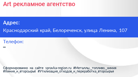 Art, рекламное агентство по адресу Краснодарский край, Белореченск, улица Ленина, 107 в дальнейшем Организация, размещена в следующих категориях: