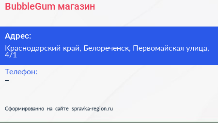 BubbleGum, магазин по адресу Краснодарский край, Белореченск, Первомайская улица, 4/1 в дальнейшем Организация, размещена в следующих категориях: