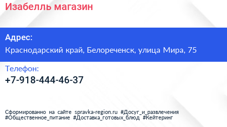 Изабелль, магазин по адресу Краснодарский край, Белореченск, улица Мира, 75 в дальнейшем Организация, размещена в следующих категориях: