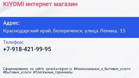 KIYOMI, интернет-магазин по адресу Краснодарский край, Белореченск, улица Ленина, 15 в дальнейшем Организация, размещена в следующих категориях: