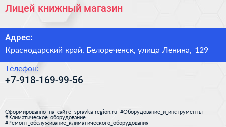 Лицей, книжный магазин по адресу Краснодарский край, Белореченск, улица Ленина, 129 в дальнейшем Организация, размещена в следующих категориях: