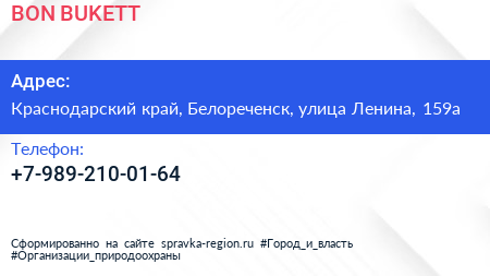 BON BUKETT по адресу Краснодарский край, Белореченск, улица Ленина, 159а в дальнейшем Организация, размещена в следующих категориях: