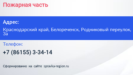 Пожарная часть по адресу Краснодарский край, Белореченск, Родниковый переулок, 3а в дальнейшем Организация, размещена в следующих категориях:
