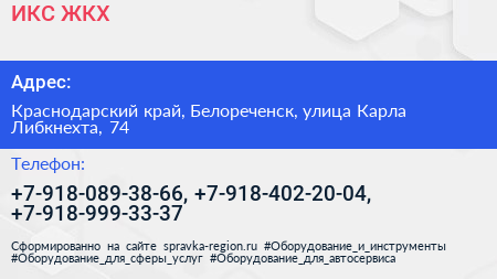 ИКС, ЖКХ по адресу Краснодарский край, Белореченск, улица Карла Либкнехта, 74 в дальнейшем Организация, размещена в следующих категориях:
