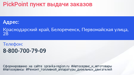 PickPoint, пункт выдачи заказов по адресу Краснодарский край, Белореченск, Первомайская улица, 28 в дальнейшем Организация, размещена в следующих категориях: