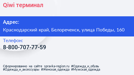 Qiwi, терминал по адресу Краснодарский край, Белореченск, улица Победы, 160 в дальнейшем Организация, размещена в следующих категориях: