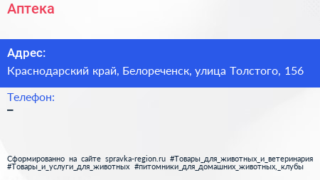 Аптека по адресу Краснодарский край, Белореченск, улица Толстого, 156 в дальнейшем Организация, размещена в следующих категориях: