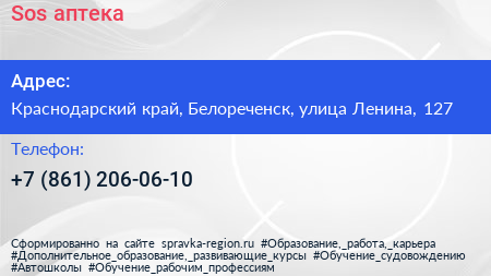 Sos, аптека по адресу Краснодарский край, Белореченск, улица Ленина, 127 в дальнейшем Организация, размещена в следующих категориях: