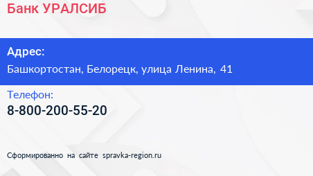 Банк УРАЛСИБ по адресу Башкортостан, Белорецк, улица Ленина, 41 в дальнейшем Организация, размещена в следующих категориях: