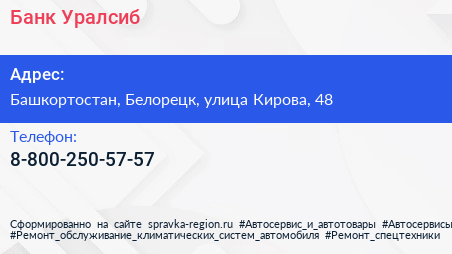Банк Уралсиб по адресу Башкортостан, Белорецк, улица Кирова, 48 в дальнейшем Организация, размещена в следующих категориях: