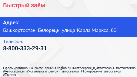 Быстрый заём по адресу Башкортостан, Белорецк, улица Карла Маркса, 80 в дальнейшем Организация, размещена в следующих категориях: