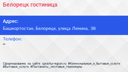 Белорецк, гостиница по адресу Башкортостан, Белорецк, улица Ленина, 38 в дальнейшем Организация, размещена в следующих категориях: