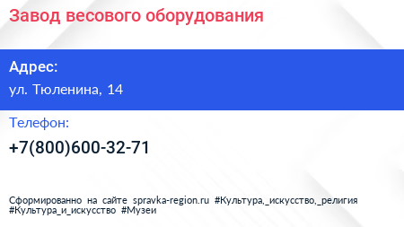 Завод весового оборудования по адресу ул. Тюленина, 14 в дальнейшем Организация, размещена в следующих категориях: