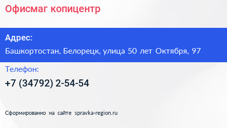 Офисмаг, копицентр по адресу Башкортостан, Белорецк, улица 50 лет Октября, 97 в дальнейшем Организация, размещена в следующих категориях: