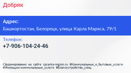 Добряк по адресу Башкортостан, Белорецк, улица Карла Маркса, 79/1 в дальнейшем Организация, размещена в следующих категориях: