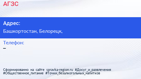 АГЗС по адресу Башкортостан, Белорецк, в дальнейшем Организация, размещена в следующих категориях: