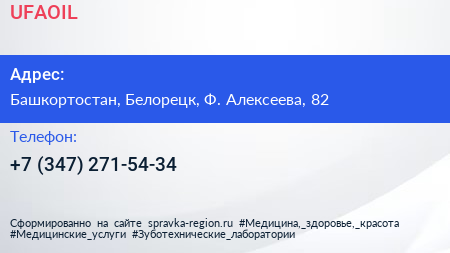 UFAOIL по адресу Башкортостан, Белорецк, Ф. Алексеева, 82 в дальнейшем Организация, размещена в следующих категориях: